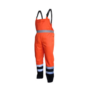 SPODNIE ROBOCZE OSTRZEGAWCZE POMARAŃCZOWO-GRANATOWE NA SZELKACH VIZWELL