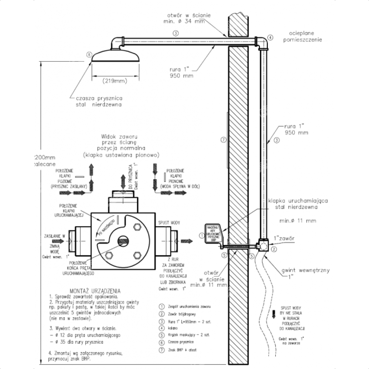 Wszystkie rury są jednocalowe. Na wejściach wody jest zawór z gwintem jednocalowym wewnętrznym.